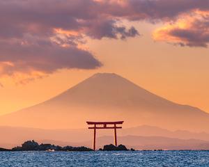 Mount Fuji and Shinto Shrine at Sunset - Kanagawa, Japan