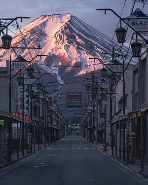 An iconic view of Mount Fuji from Fujiyoshida, in Yamanashi. Taken during sunrise, the colors of the blazing clouds to the east were caught by Fuji. Own one of the most iconic views in all of Japan with this print.